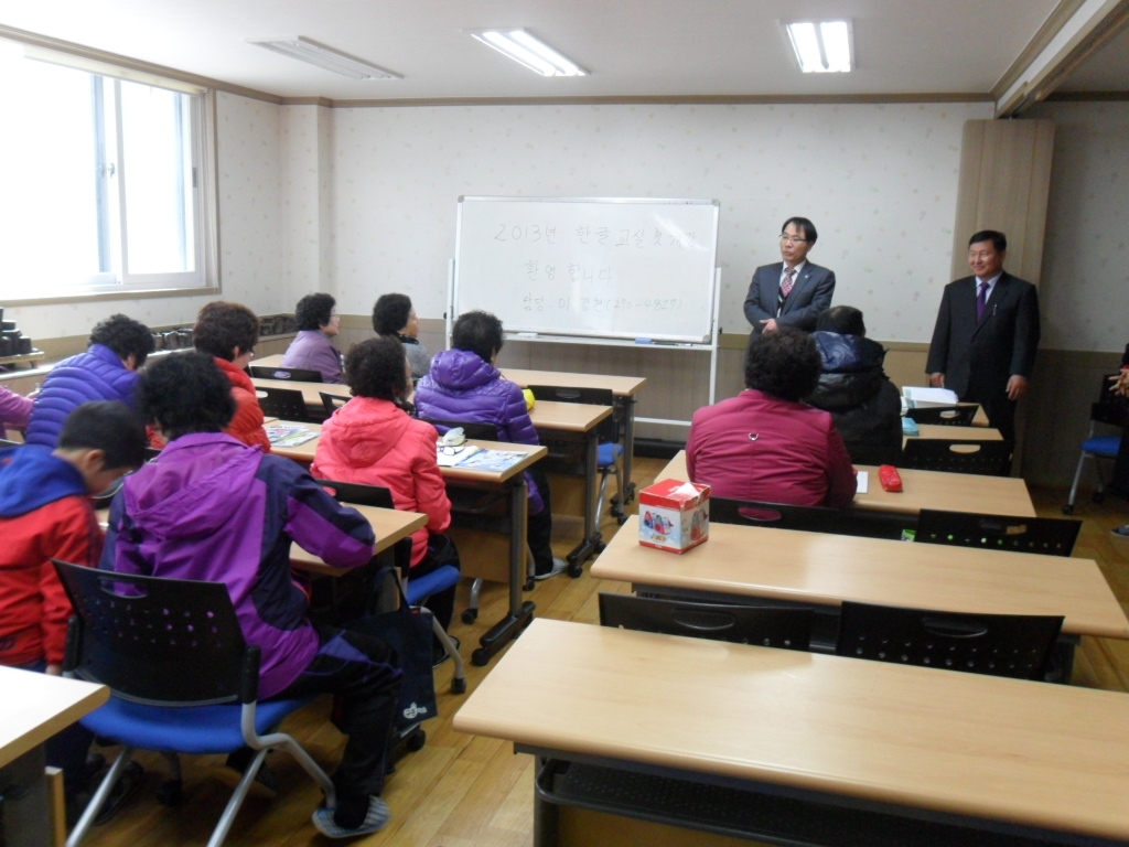 상동 주민센터는 시대적 아픔과 경제적 어려움으로 인해 미처 한글을 깨우치지 못하는 이들을 위해 한글교실을 열었다.