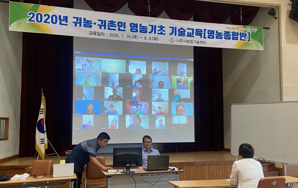 나주시 농촌진흥과에 따르면 현재 △농업인연구회 정보화 △우리 쌀 이용 단체급식 △귀농·귀촌인 영농기초기술 보급 △유기농기능사반 교육 등이 비대면 화상교육으로 운영되고 있다.